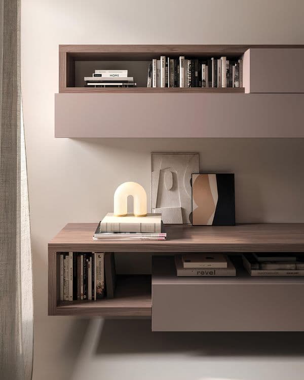 - Tipologia: Composizione modulare con elementi sospesi e contenitori a giorno