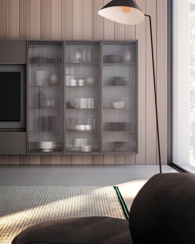 - Ante Glass: Vetro Canneté con telaio in metallo brunito